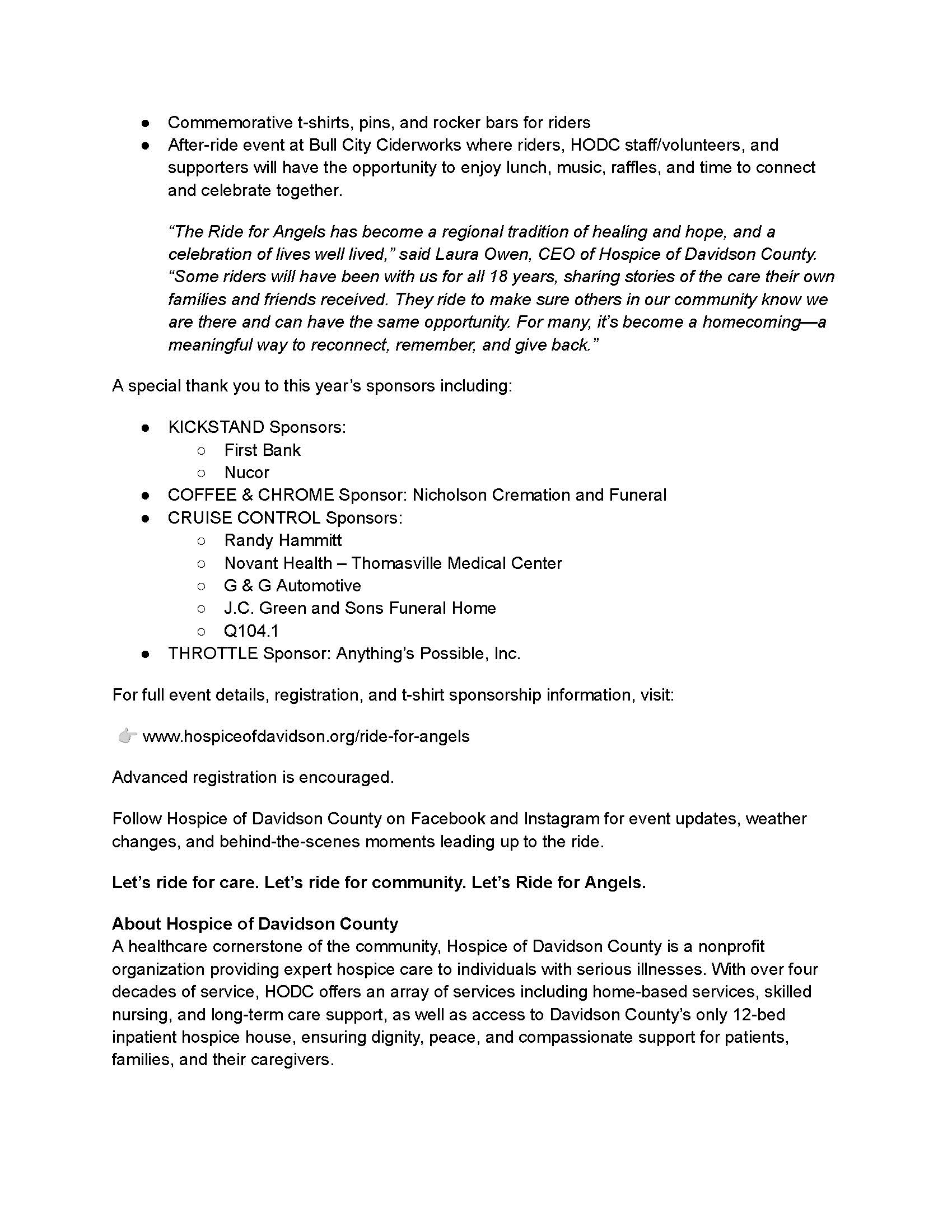 As we prepare for this year’s 18th Annual Ride for Angels, we’re excited to share our pre-event press release, highlighting some exciting updates and the deep impact this event continues to have on our community.
